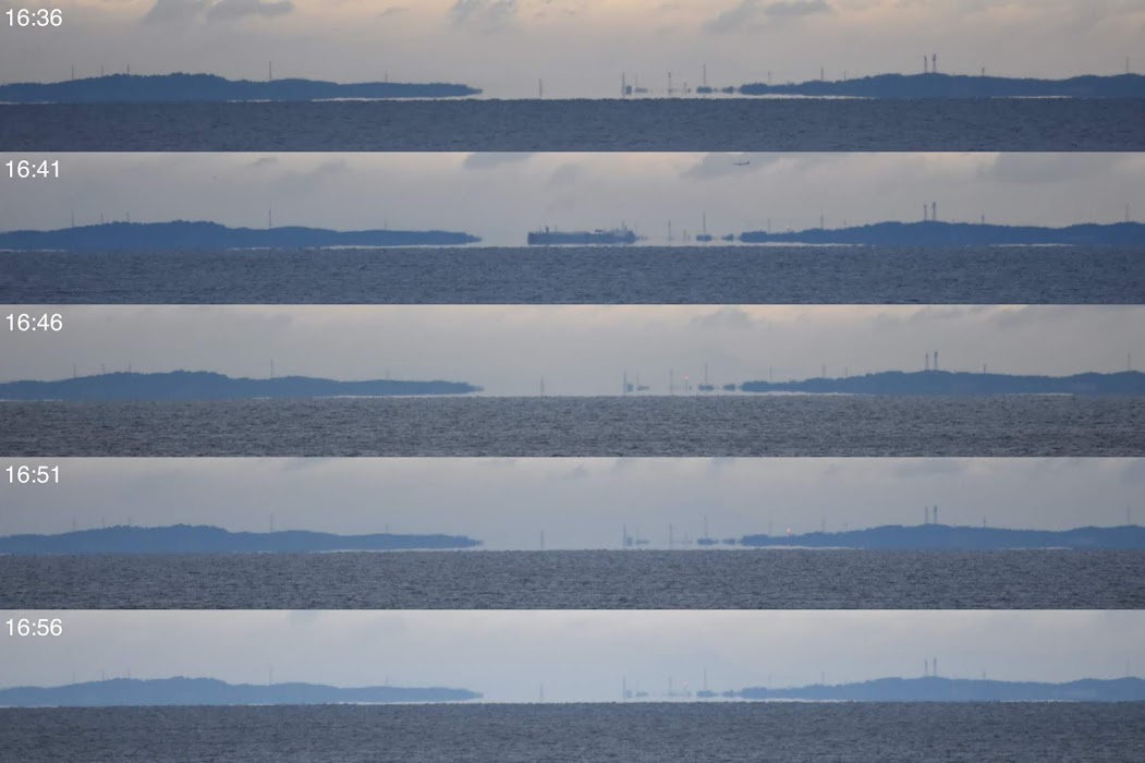 そこからわずか9時間後の10/08/18:00では915hPaと9時間でおよそ50hPaも下がる暴れっぷり.爆弾台風とでも呼びましょうか.暴風による災害も怖いですが,気圧がかなり低いということから,沿岸部での高潮被害も怖いところです. 今日は終日曇天で,地上付近の気温はあまり上がらず,20~25℃をほとんどの時間で推移.伊勢湾では,下位蜃気楼による浮島現象がみられました. ▼T19中心気圧▼ |