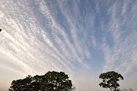 朝から巻積雲や高積雲が広がる空!下層の雲はなく,空が高く感じます。職場の同僚は「秋のような空」と形容していましたが,このような巻積雲・高積雲が主体の空は一年を通じて生じうるものです。今日の雲は,上空の強風軸に対応した雲でした。夕方には巻積雲の一部が房状雲となっており,その変化に釘付けになってしまいました。明日は久しぶりの皆既月食です。
